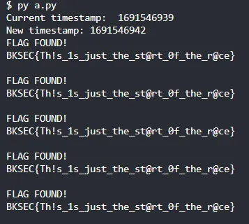 Tuy nhiên với mỗi lần file up lên thì server sẽ gắn timestamp vào tên file. Như ý tưởng từ bài post của VPNT sec ở trên. Chúng ta có thể thực hiện race bằng cách up liên tục và đồng thời gọi 1 file có timestamp mà mình đoán trước sẽ xuất hiện trong tương lai để gọi tới.