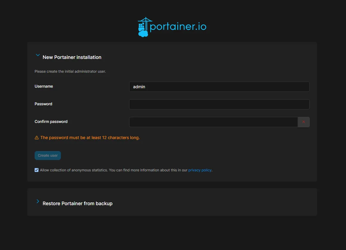 Ở lần truy cập đầu tiên, Portainer sẽ yêu cầu người dùng thiết lập tài khoản và mật khẩu. Hãy đổi theo cách bạn muốn