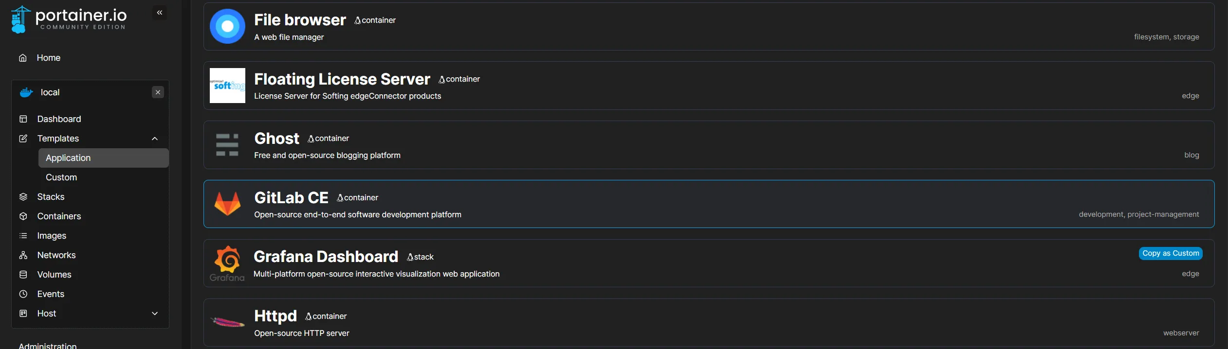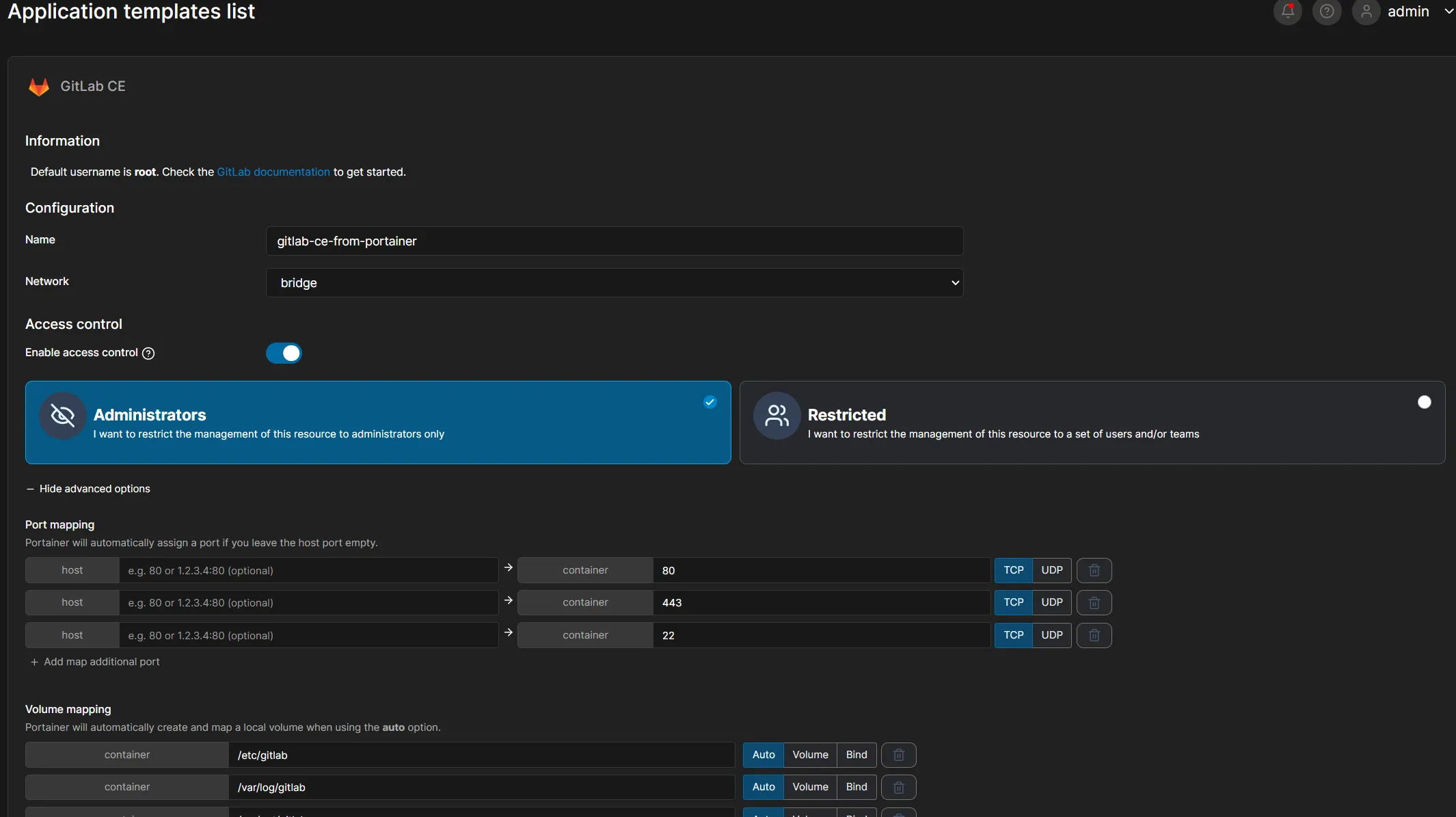 Giờ mình sẽ thử tạo Gitlab CE từ template của Portainer