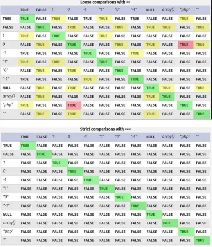 ===là Strict comparisons Xem 2 bảng dưới đây để hiểu thêm: